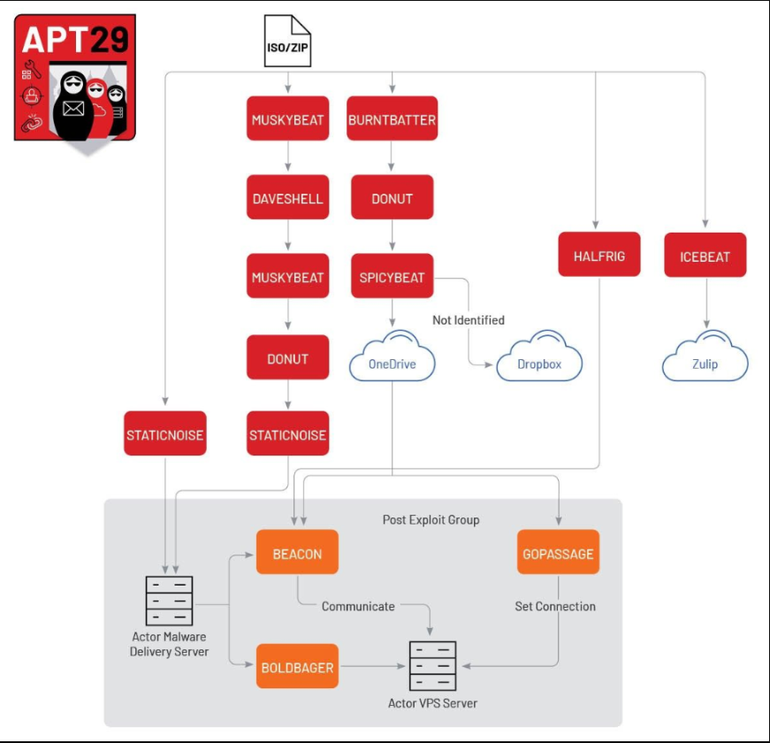 APT29同时使用了多种感染链,表明不同的初始访问运营商或子团队可能在并行操作,以服务不同的区域目标或情报目标。